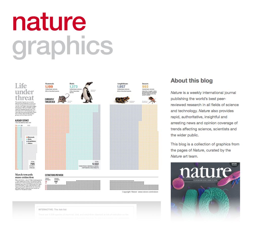Nature has a fantastic blog called Nature Graphics. Kelly and her team explain the creative process, background and design challenges behind their information graphics. A must follow for anyone interested in how data, research, design and graphics come together. Their newest entry explains a bit more about our graphic.