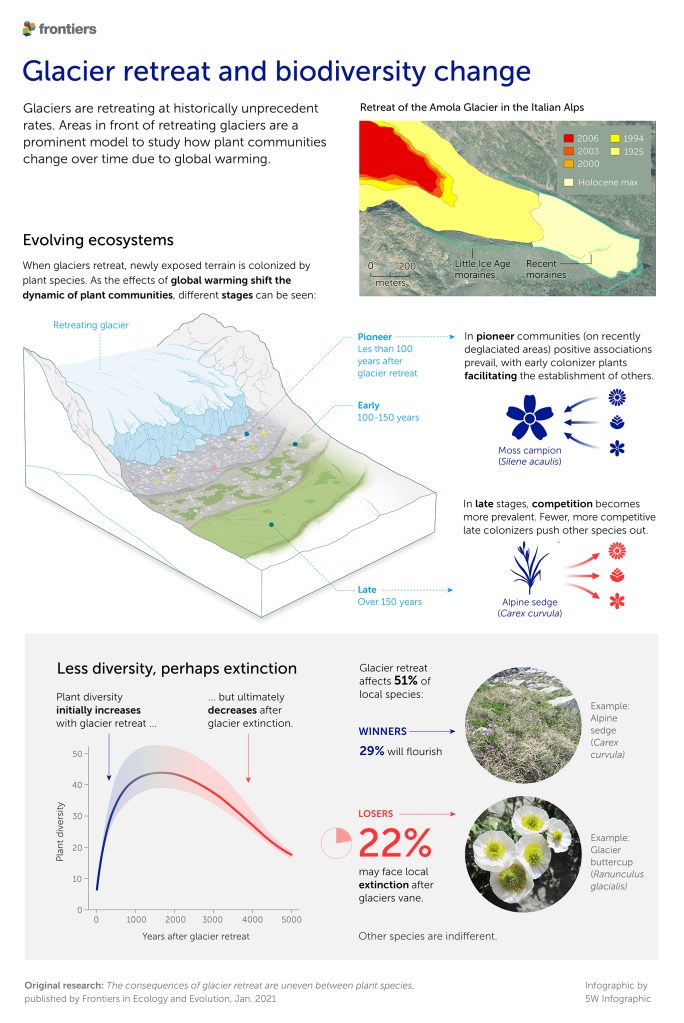 5W Infographic – Glacier retreat and biodiversity change v2 Published February 4, 2021 at 2048 × 3065 in 5W Infographic – Glacier retreat and biodiversity change v2